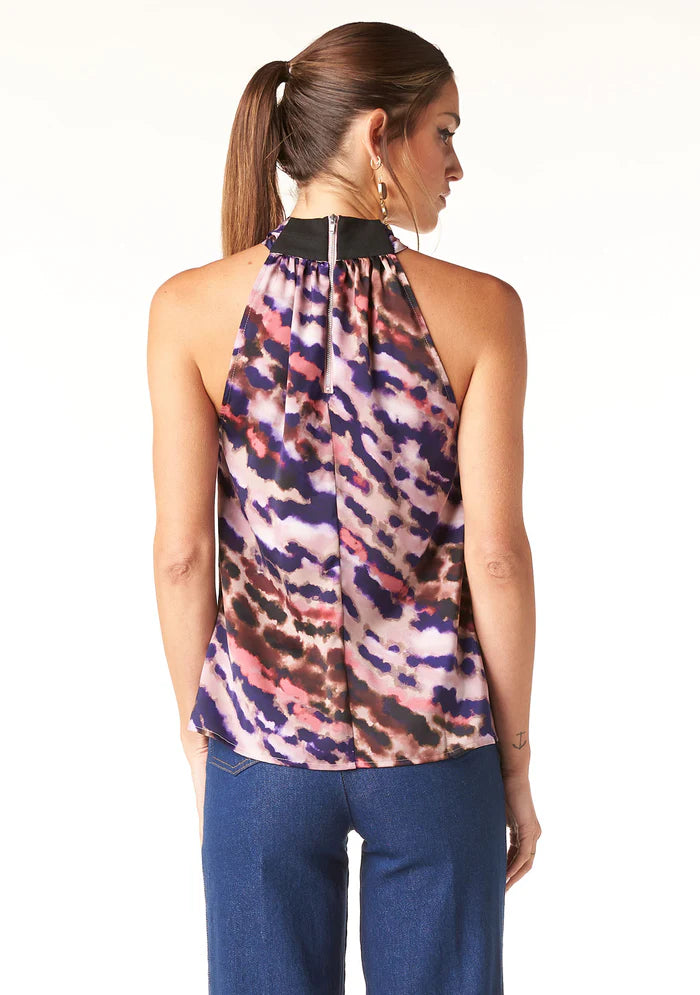 Quency Poly Satin Top - Multi Cloud Print