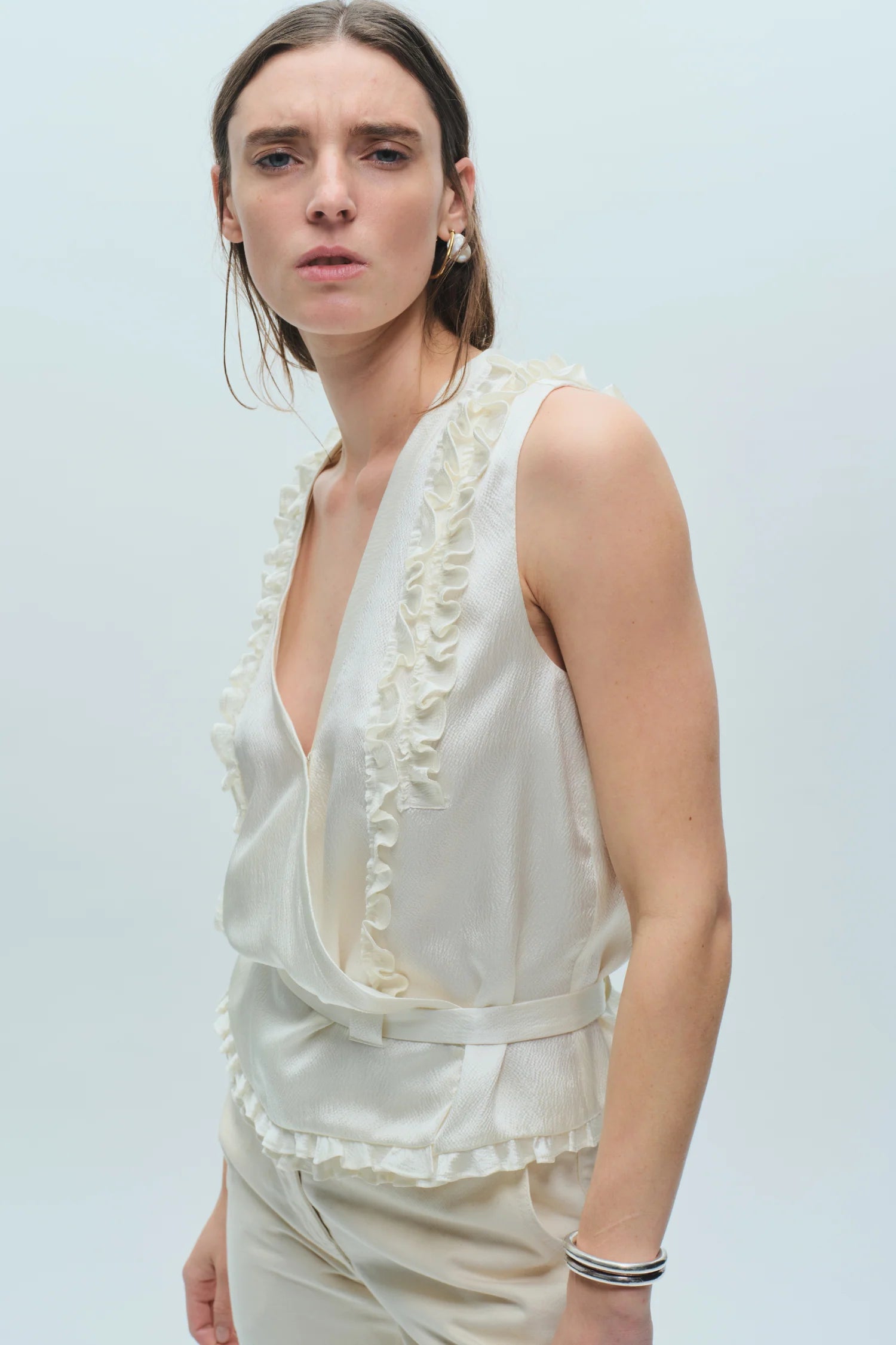 Ryan Silk Wrap Top - Ivory