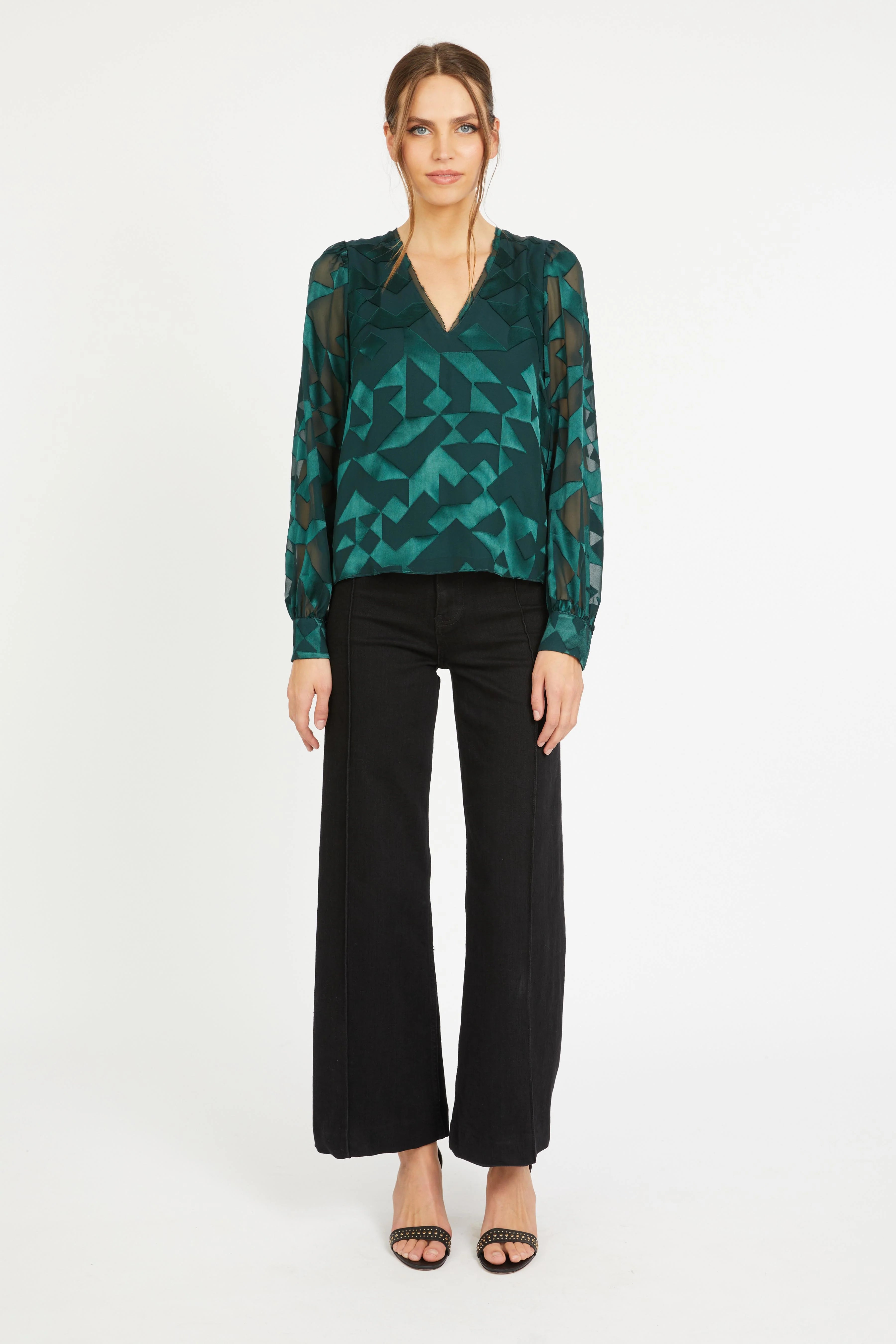 Ruby Top - Sea Moss Silk Geo