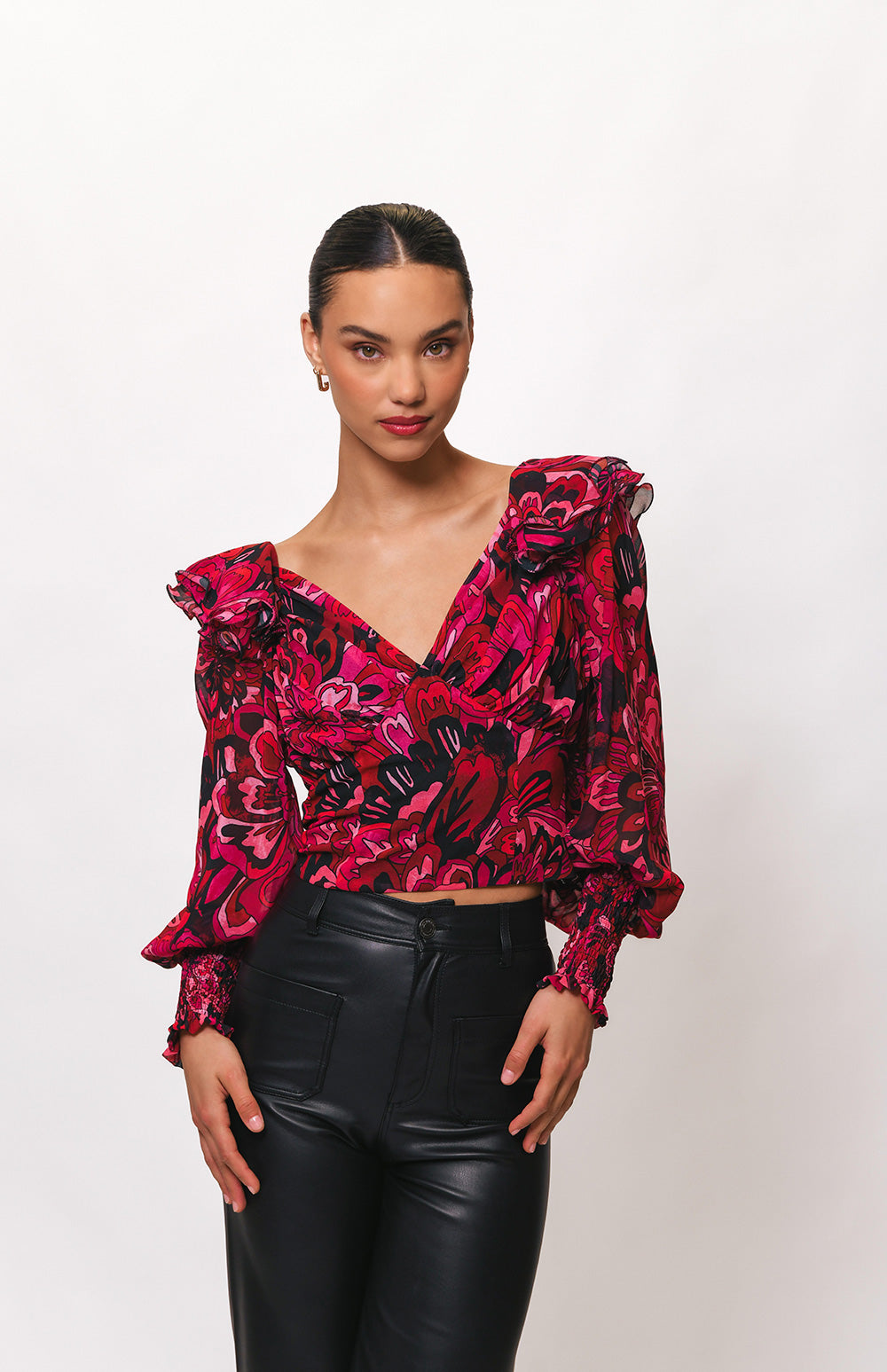 The Cropped Collegiate Sweatshirt - Heather Grey/ Burgundy