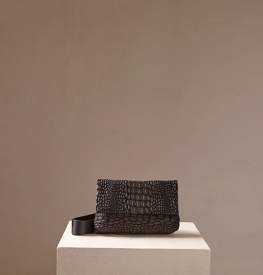Tom Zip Medium - Chocolate Diamond Suede/ Antique Gold