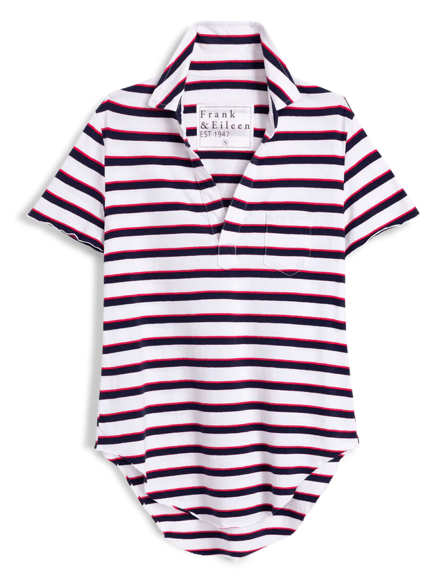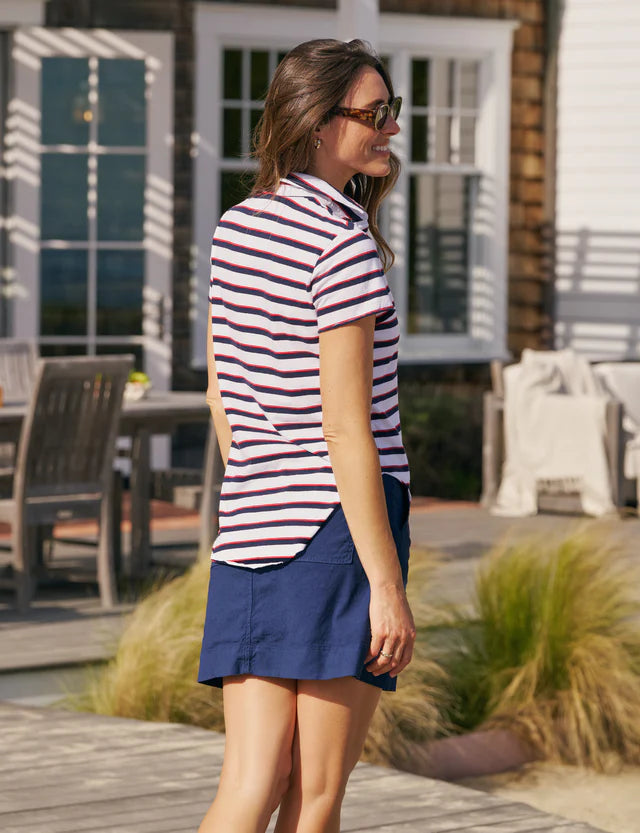 Charlotte Perfect Polo - White with Red and Navy French Stripe