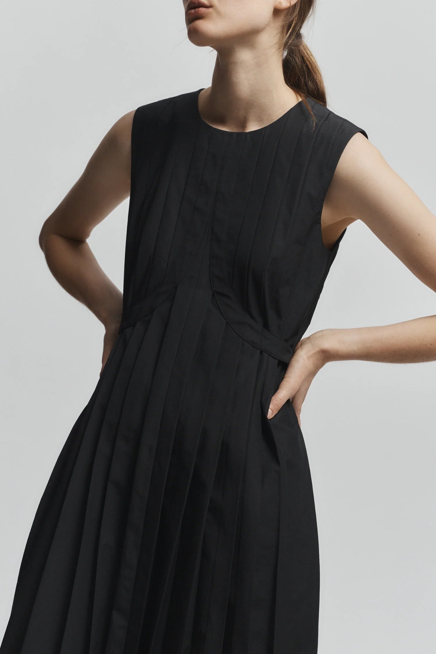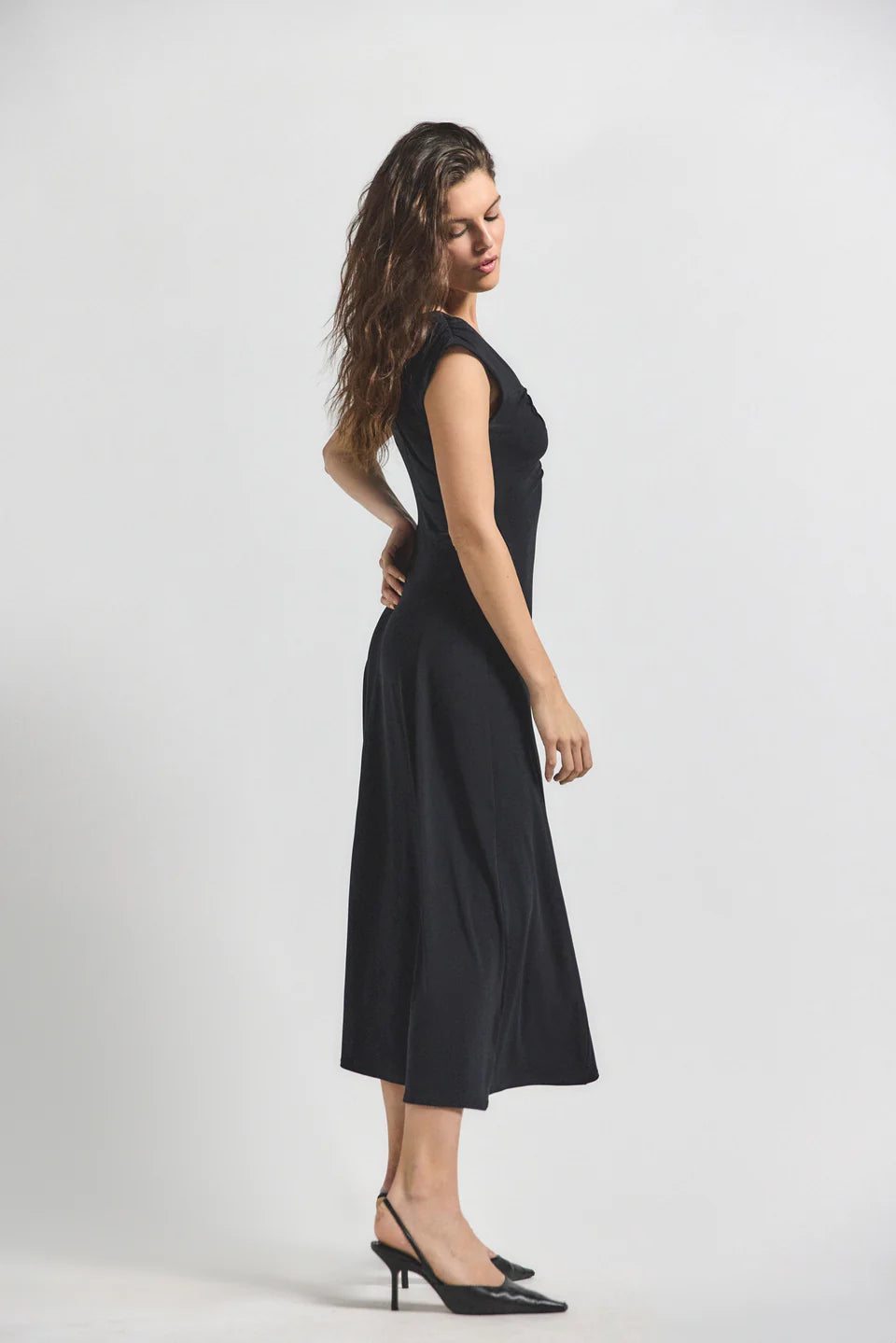 Isabel Rouched Sleeveless Dress - Black