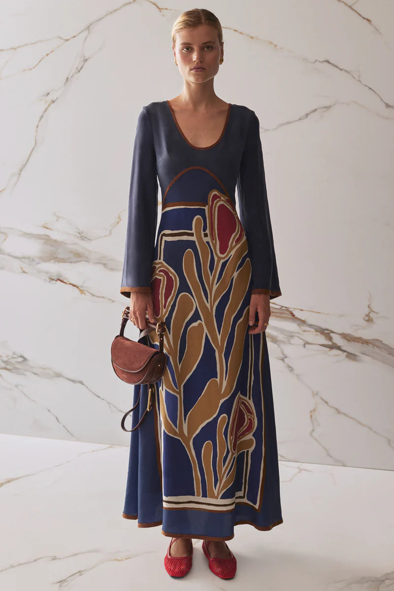 Eliana Dress - Navy Vines