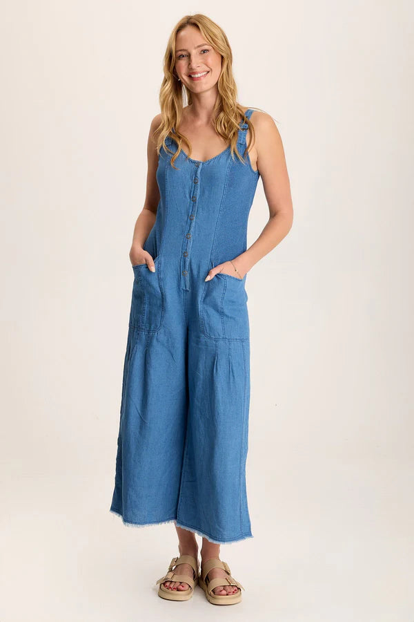 Jalila Mock-Denim Jumpsuit in Indigo Twill - Etiolate Wash