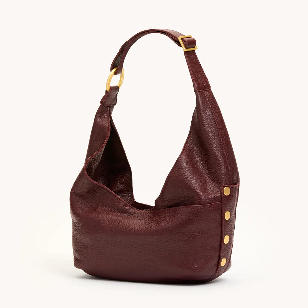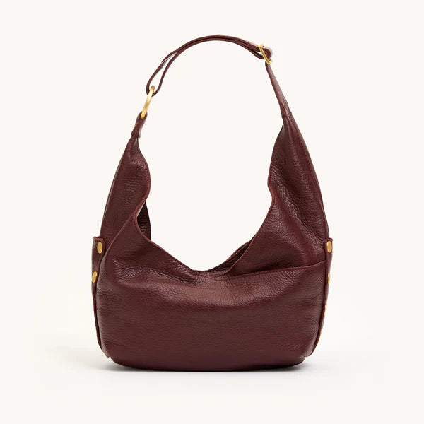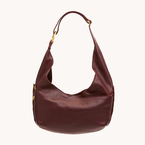 - Crafted with a deep oxblood red pebble leather with brown and red undertones
