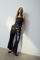Elevate your wardrobe with the Andrew Leather Pants by Melissa Nepton. These sleek, black faux leather pants feature a modern silhouette that effortlessly blends edgy style with timeless sophistication. Designed with a flattering fit and subtle stretch, they provide both comfort and versatility, making them a perfect choice for day-to-night transitions. Whether paired with a cozy knit for a casual outing or a chic blazer for a polished evening look, these pants are a must-have statement piece for any season.