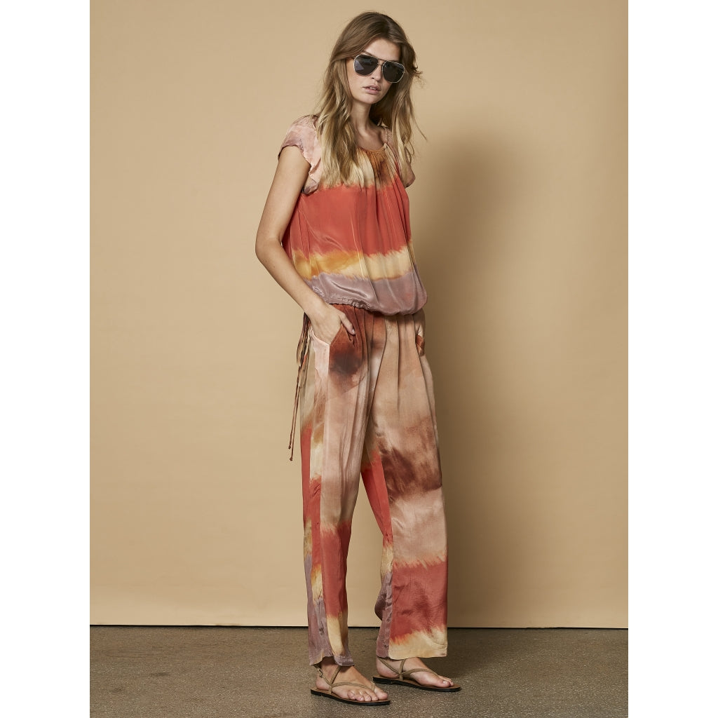 The trousers have straight, wide legs and a light, airy fit, which creates a relaxed look. They are made in a soft and smooth viscose quality and have elastic on the sides of the waistband for extra comfort. The broad tie-dye print adds a modern and creative twist to the simple cut.