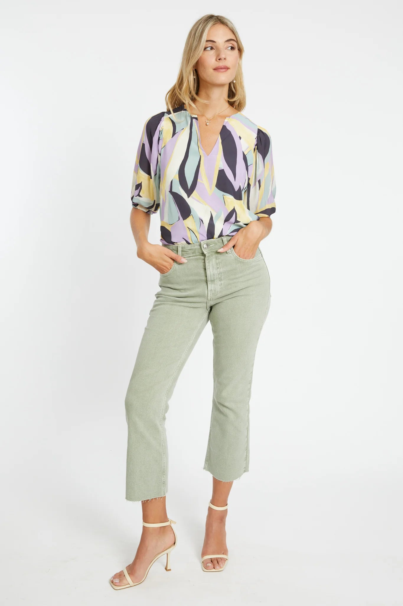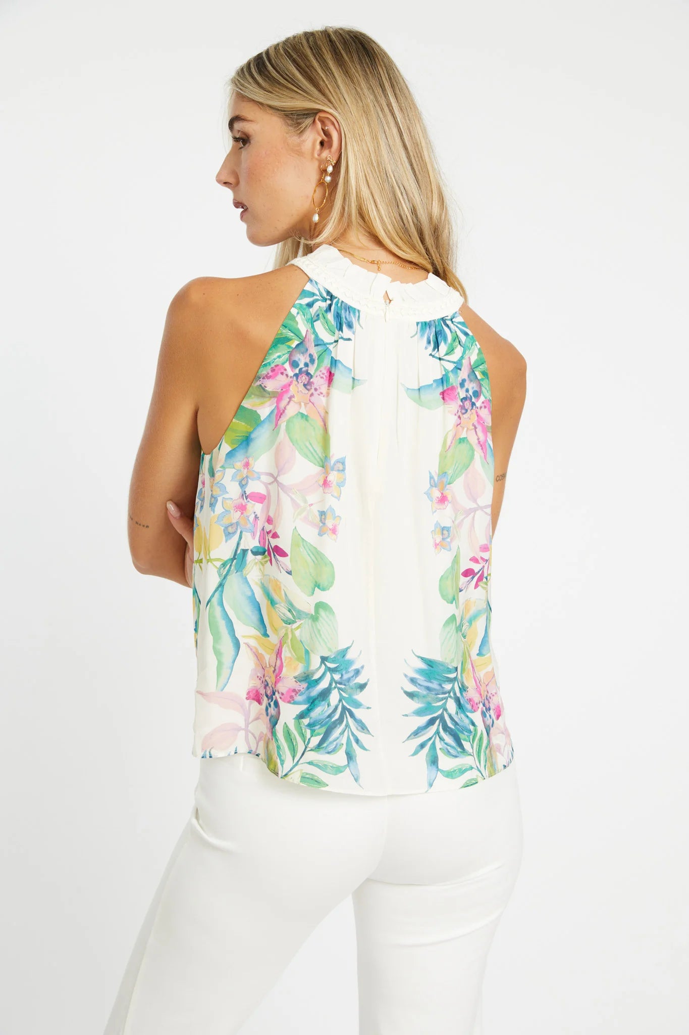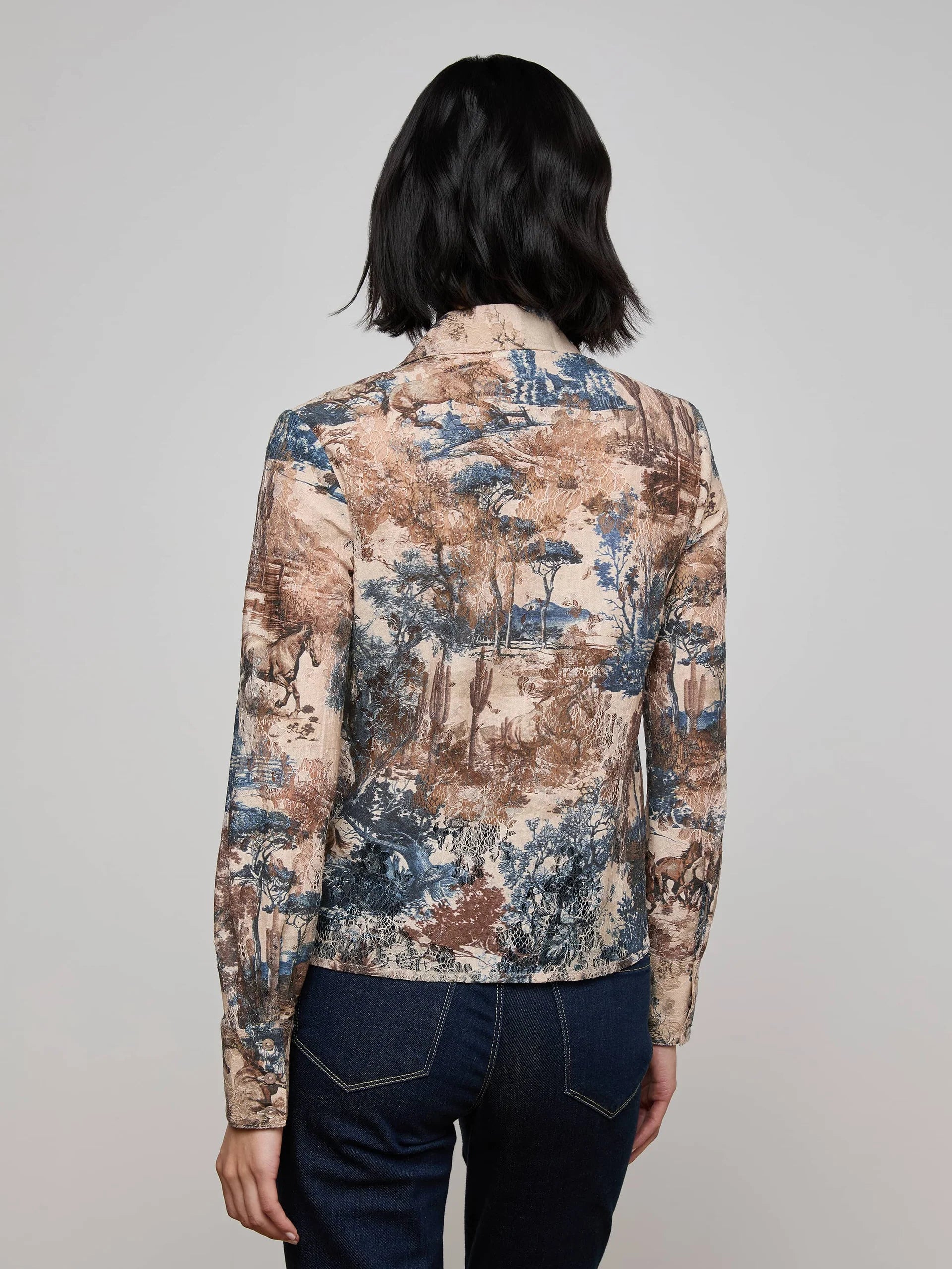 Maia Printed Lace Blouse - Tan Multi Western Toile
