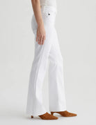 Our Angel low-rise bootcut jeans have a subtly flared silhouette. Done in a crisp white, this pair is designed in 10.25 oz. Cloud Soft Stretch Denim. This exclusive AG fabric has special left-hand twill construction that allows the yarns to gently relax and untwist for a luxe, supple feel. It's designed to get even softer the more you wear it.