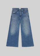 Our Lyra is a vintage inspired silhouette that sits high on the waist with an easy, relaxed top block cut with a cropped inseam with a voluminous wide leg.