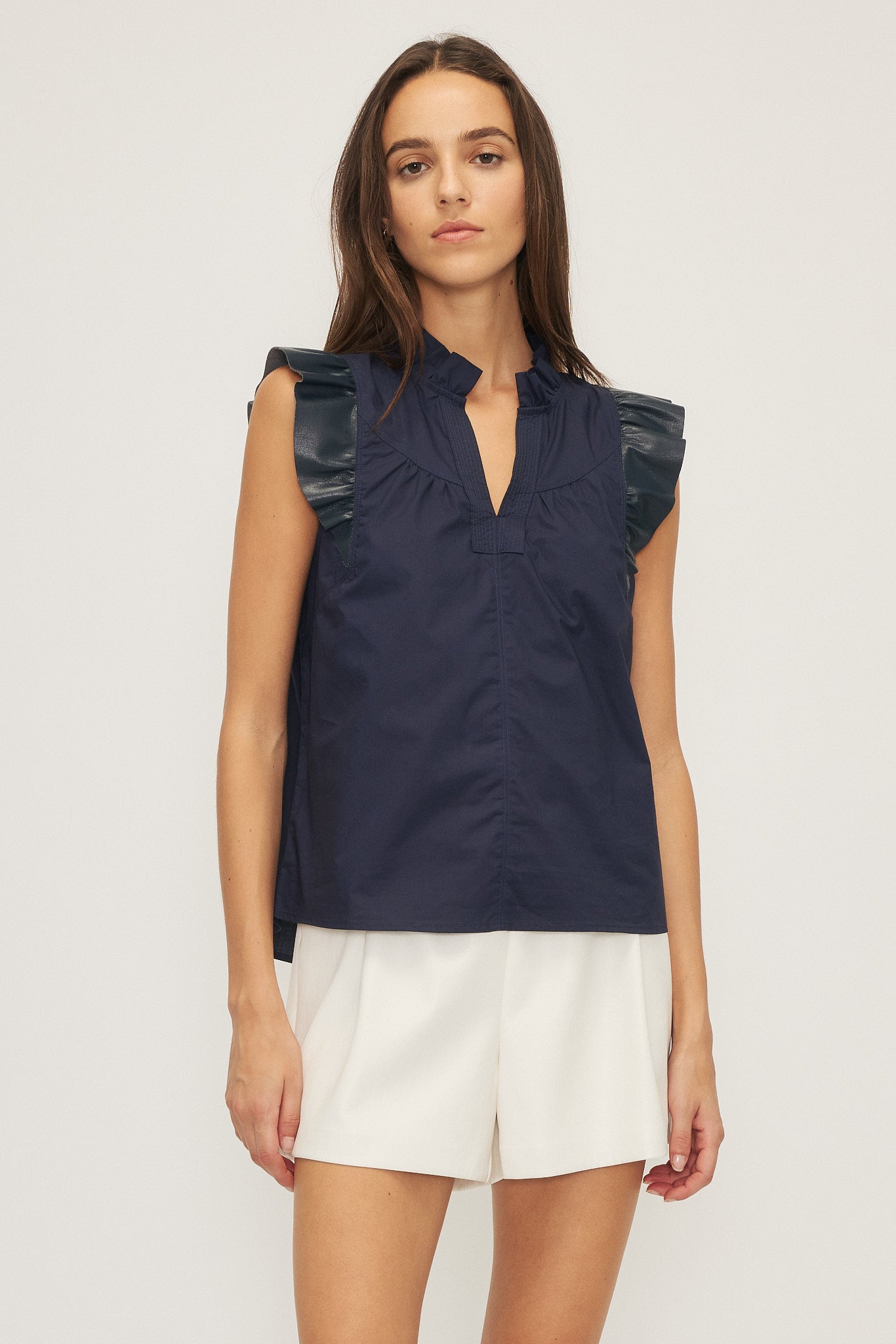 Victoria Italian Tuxedo Shirt - French Blue with White Bib