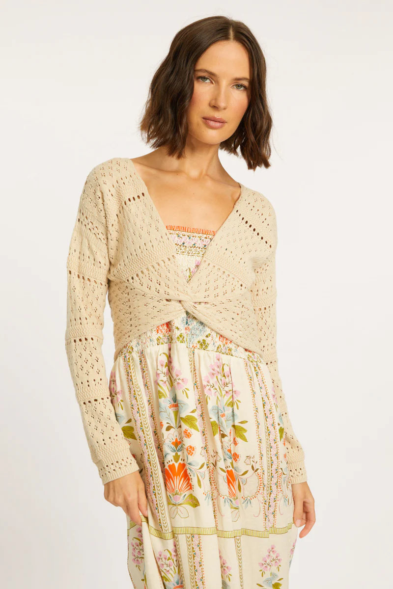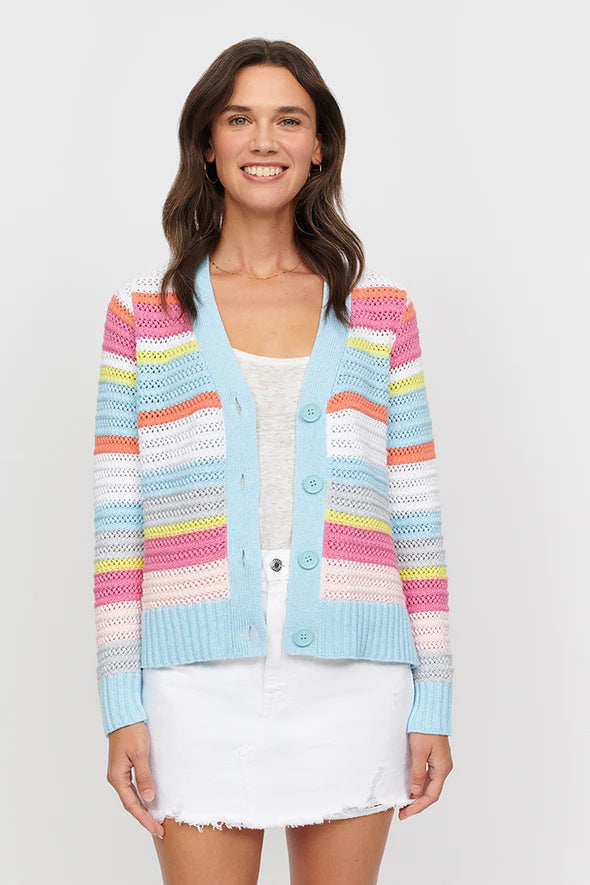 Lauren Textured Stripe Vee Cardigan - Seafoam Multi
