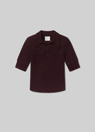 The ‘Amina’ polo is an elevated essential, cut in an ultra-soft, supportive rib. Designed with a elbow sleeve and front patch pockets, it offers a clean yet tactile silhouette. The deep Mahogany hue—rich with dark purple and brown undertones—adds a modern, moody edge. Ideal styled with tailored denim or leather.