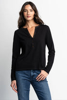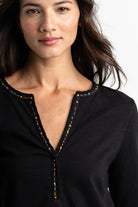 The XO tee redefines casual with elevated details like petite snap closures and rainbow embroidery at the neckline and placket. Designed with a soft split neck and long sleeves, this 100% Cotton slub style blends everyday comfort with a hint of playful charm.