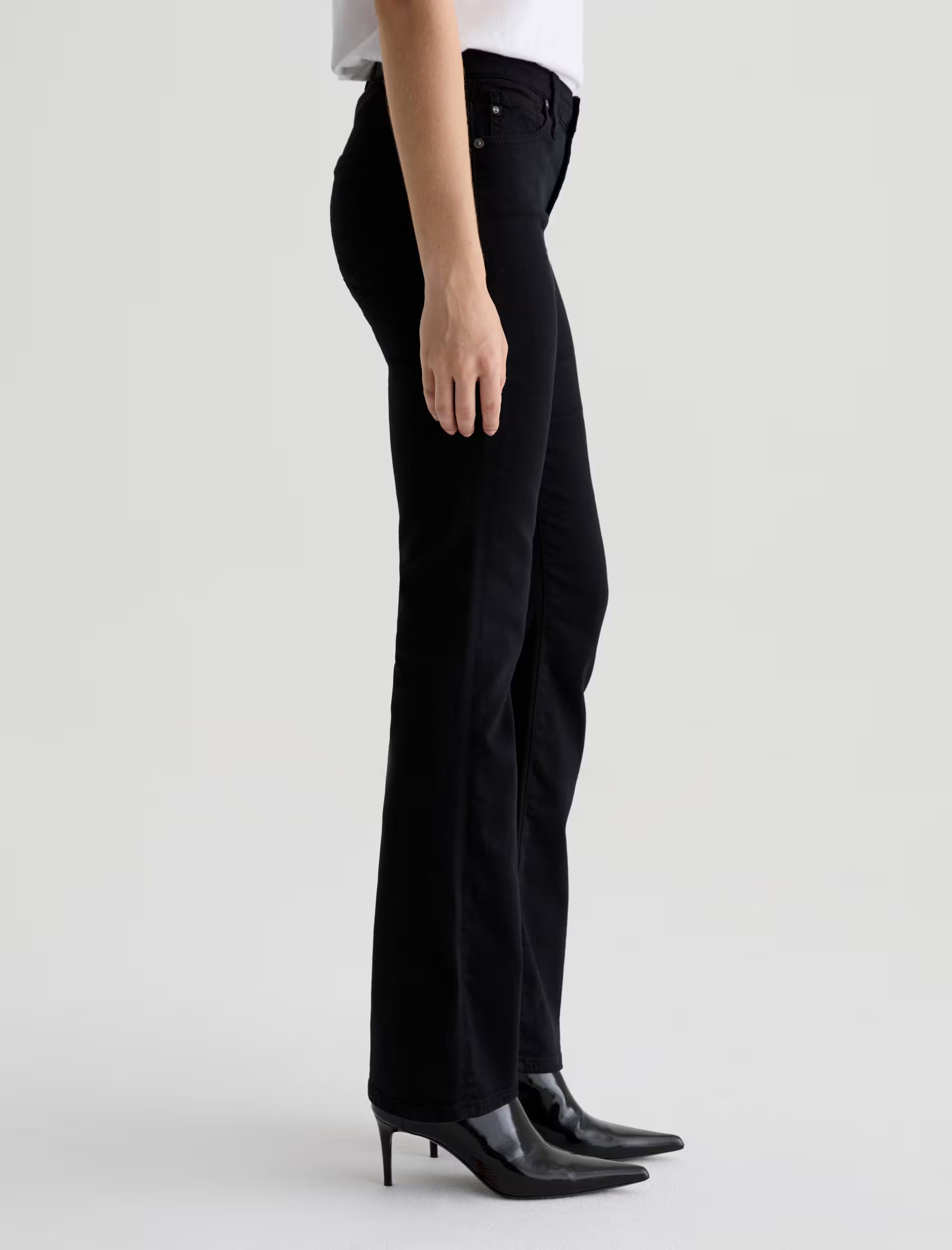A nostalgic silhouette made to pair with your favorite cowboy boots, Angel is crafted in AG Cloud Soft Denim™, a special left-hand twill construction that gets softer with every wear. A low-key bootcut jean with a hip-hugging low-rise waist and subtly flared leg. Designed in our deep, saturated black wash.