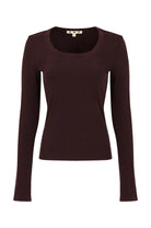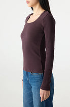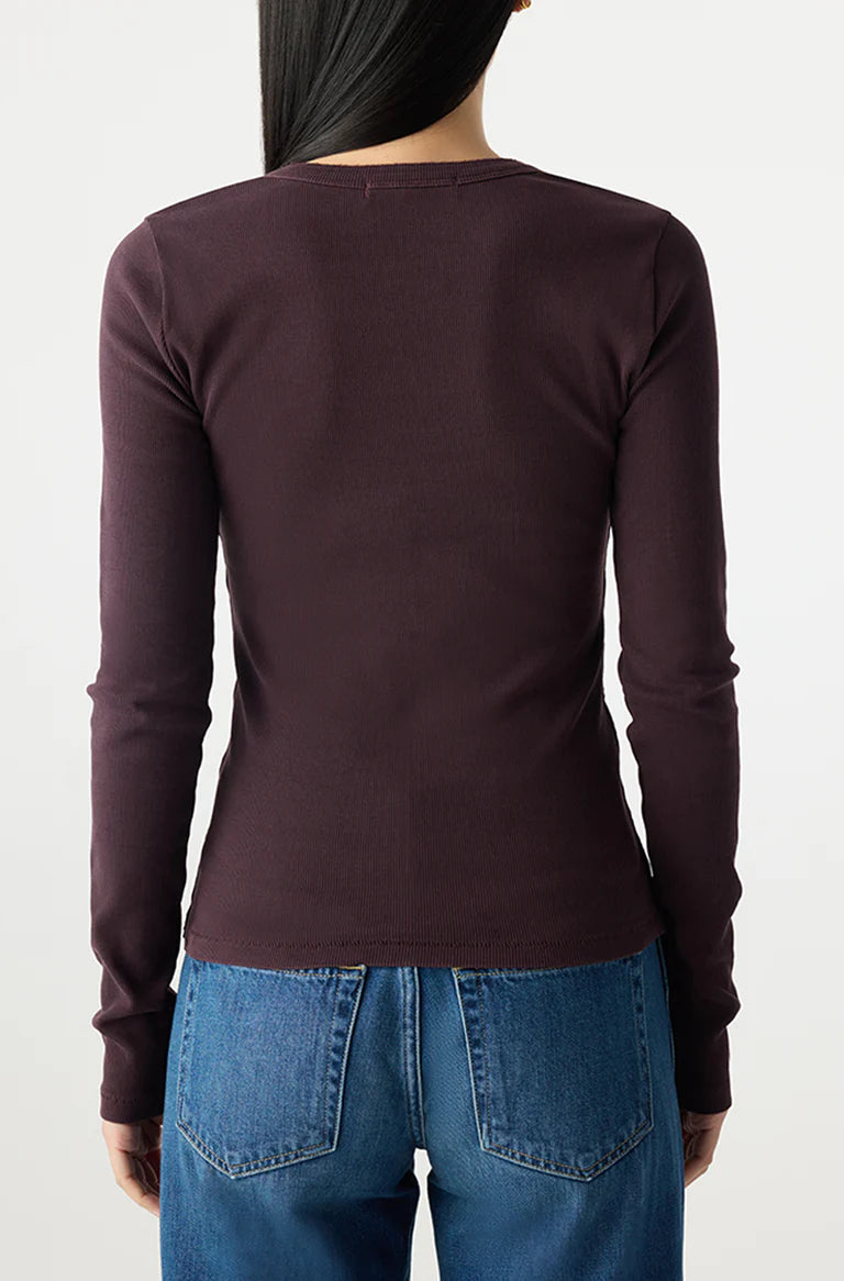 Mini rib long sleeve with a flattering scoop neck and close fit. Intentional distressing throughout.
