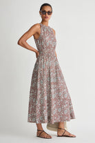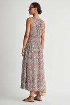 - Elastic at neckline and waist, fitted at the bodice, slits at both sides of skirt, side pockets