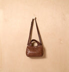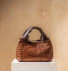 You can carry it by hand or over the shoulder, thanks to its adjustable, detachable leather strap. The exterior features a geometric croco-inspired texture, adding subtle depth and a touch of distinction to its timeless design.