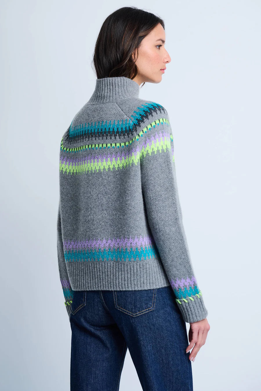 A modern take on a winter classic, Fireside features pop-colored Fair Isle intarsia and a softly structured high split ribbed neck. Crafted in 100% Cashmere, it’s finished with contrast stitching at the rolled cuffs for a thoughtful touch. Relaxed in fit, timeless in feel—your cold-weather go-to with a twist.