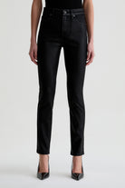 Mari Mid Rise Slim Straight - Leatherette Super Black