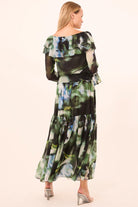 Patsy is a bohemian-inspired off-the-shoulder top cut from our blurred Casablanca lily printed chiffon. Tiered ruffle detailing drapes across the chest and back, finished with an adjustable front keyhole tie closure. Designed to be worn on or off the shoulder, it features long blouson sleeves with elasticated ruffle cuffs. Pair with the coordinating Polly skirt for a standout set that transitions effortlessly between seasons, or style with denim for an elevated everyday look.