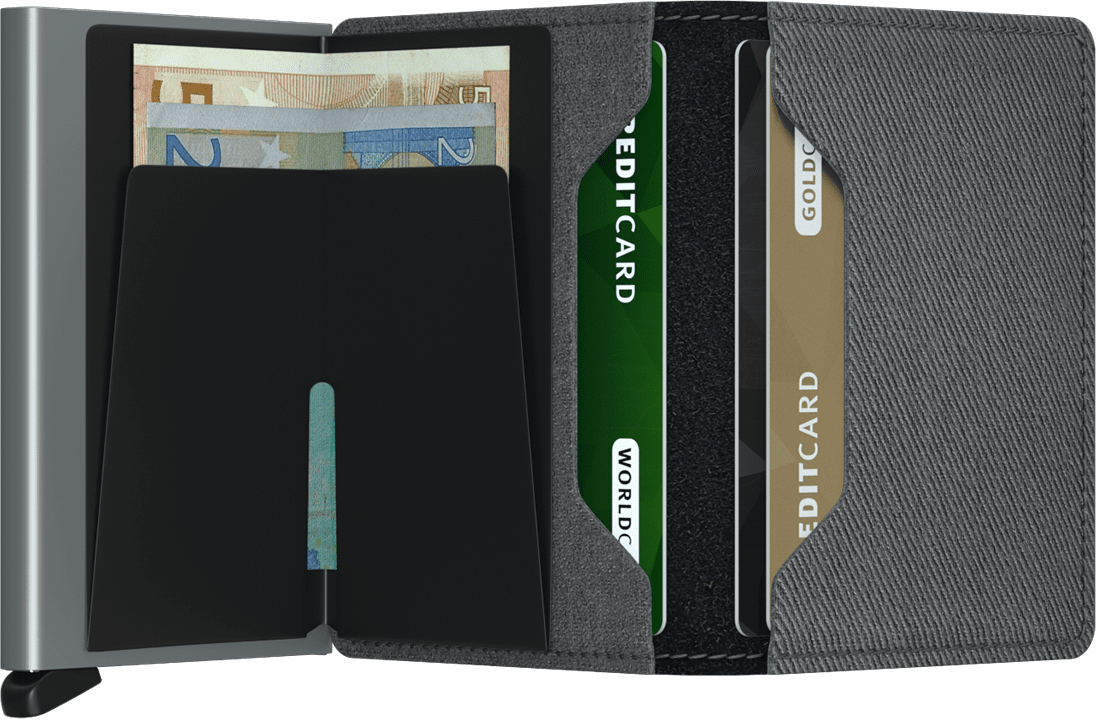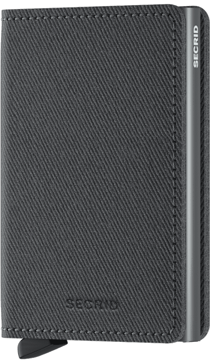 Slimwallet Twist Grey has the look and feel of iconic twill fabric, but with the durability and character of leather.
