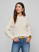 A fresh take on the classic cable knit, the Storm features a boxy shape with intricate stitching that adds texture. Finished with gold button accents at the cuffs, it brings an elevated edge to everyday dressing. Wear the cropped style with high-rise jeans and heels for your next casual night out.