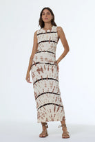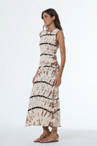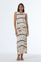 The Tamara Dress blends effortless comfort with a bold print, making it a must-have for warm-weather dressing. Crafted in a soft, body-skimming knit, this sleeveless maxi silhouette features a crew neckline and a straight skirt with a subtle side slit for easy movement. The vibrant wash gives it a distinctly vacation-ready vibe-perfect for beach days, holiday outings, and casual, party-ready summer style.
