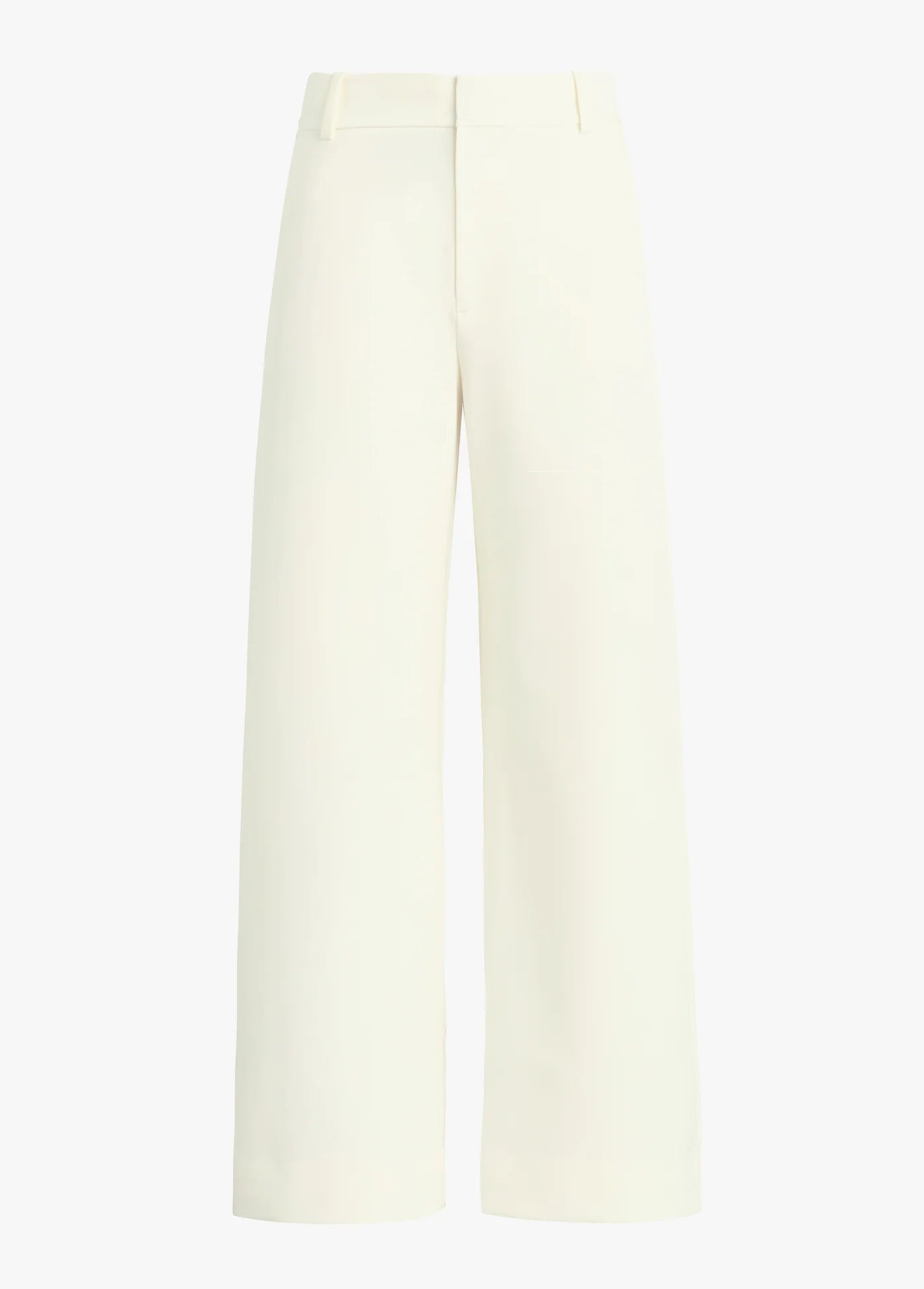 The Jones Pant Petite has a high 12.25" rise and a wide leg with a 28.5" inseam that creates a super chic silhouette for smaller frames. These ivory Pearl trousers look great with anything (yes, anything).