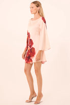 A chic update on a classic shift style, our best-selling Twiggy dress is a timeless mini silhouette cut from pale pink satin with a large-scale peony print. A boat neckline flows into long bell sleeves and an adjustable tie waist for a flattering fit. Remove the belt and pair with flats for an effortless daytime look or style with heels for the perfect dinner-ready moment.