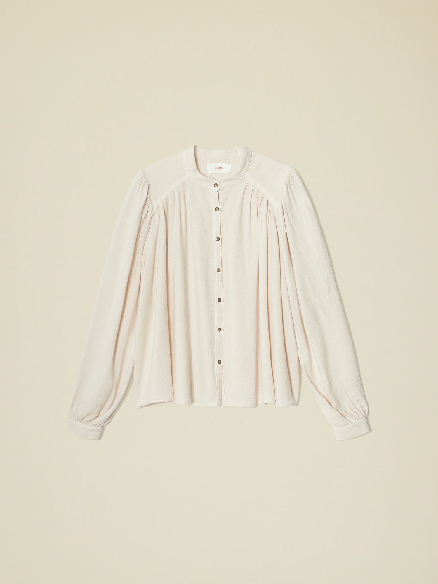 Easy does it. Florie is made in our soft, textured rayon cotton. Florie is an easy button-front shirt with metal buttons, shirring throughout, and a Western back yoke.
