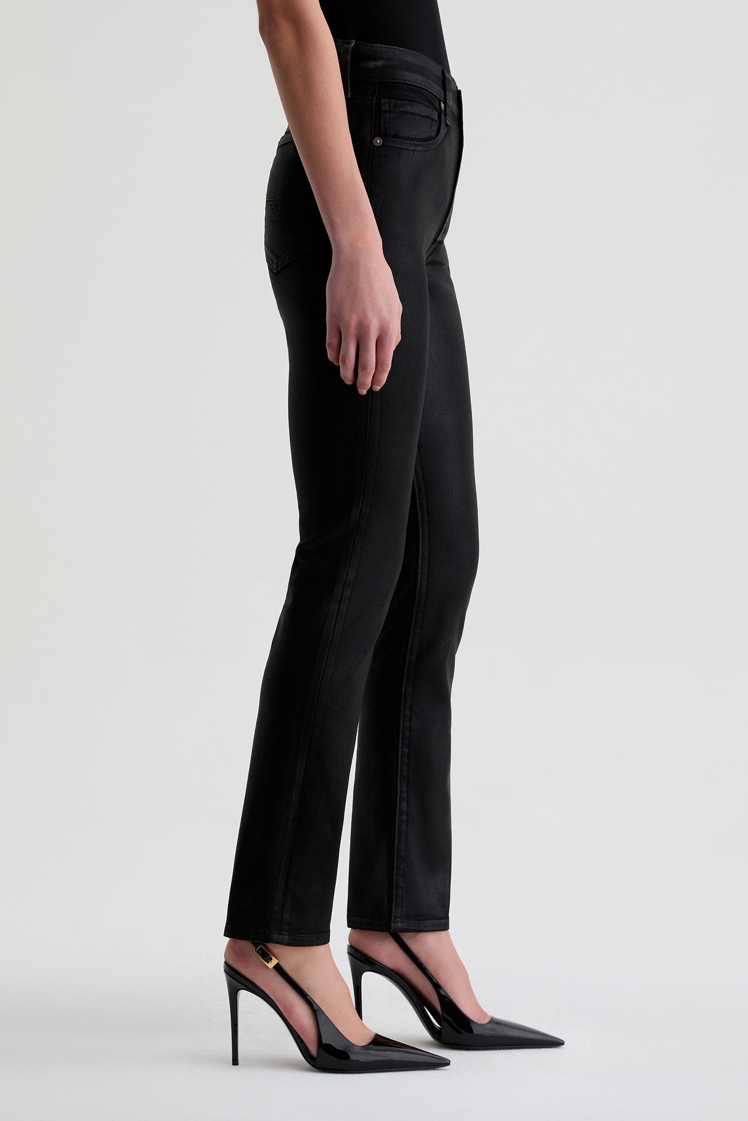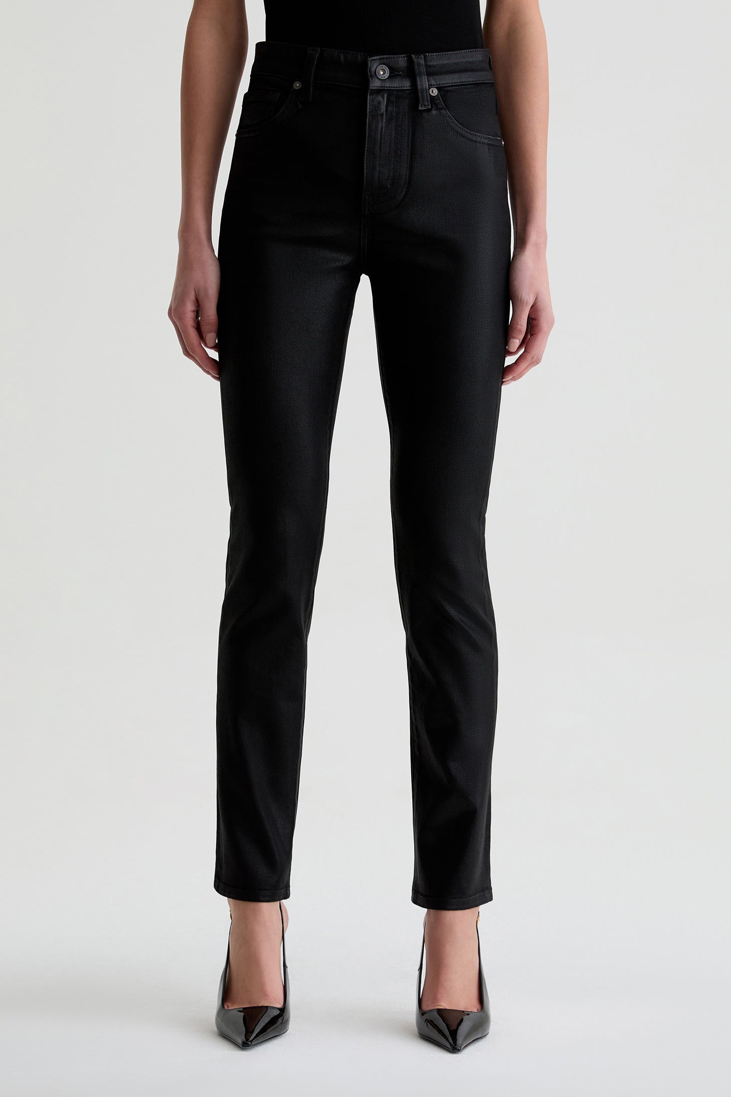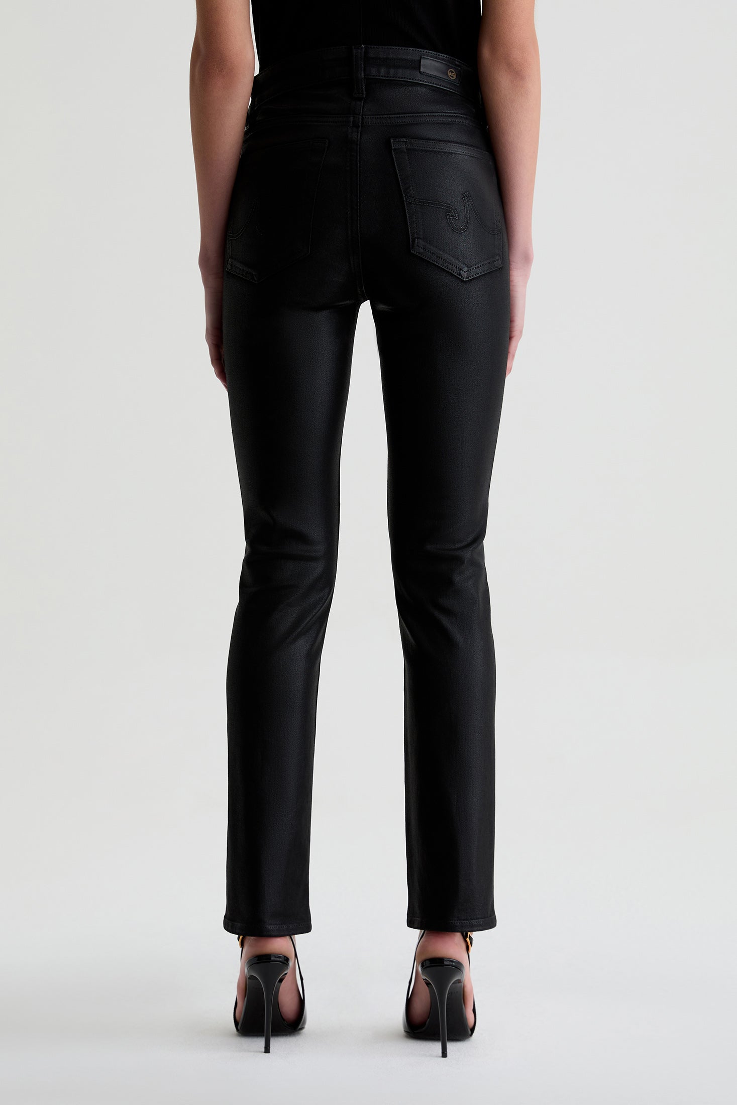 Mari Mid Rise Slim Straight - Leatherette Super Black