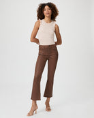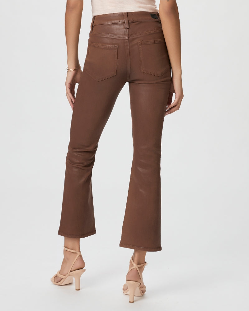 Claudine is our vintage-inspired, high-rise ankle flare. This super flattering style has a leather-like look, but doesn't sacrifice comfort. Cut from our coated TRANSCEND denim in cognac, this style is luxuriously soft with plenty of stretch and recovery to give it a flawless fit from morning to moonlight.