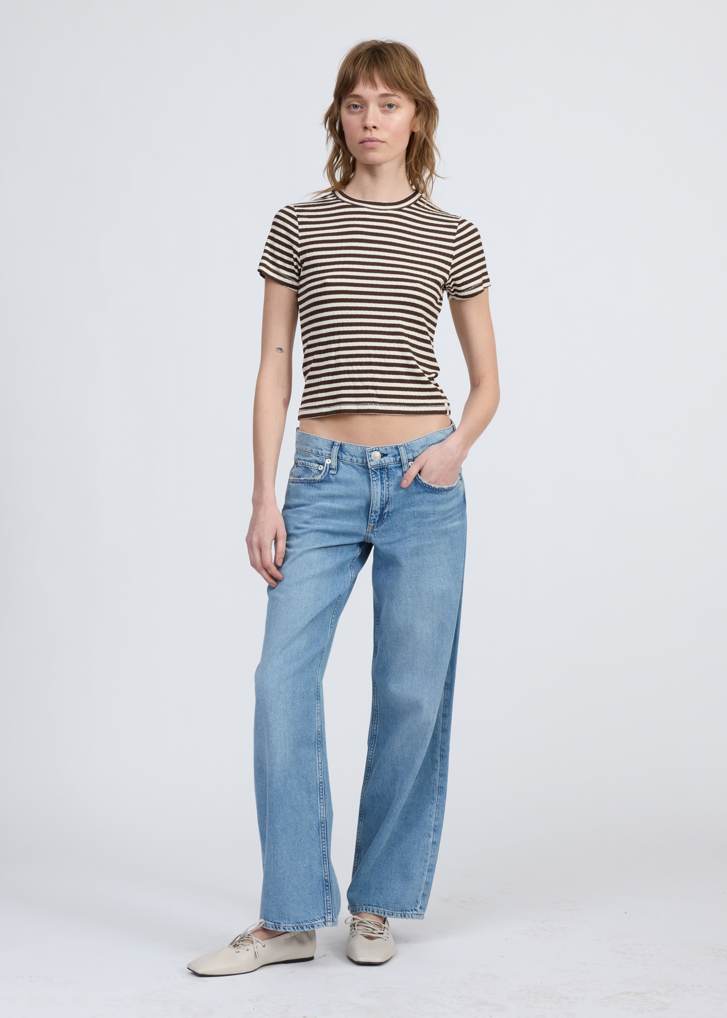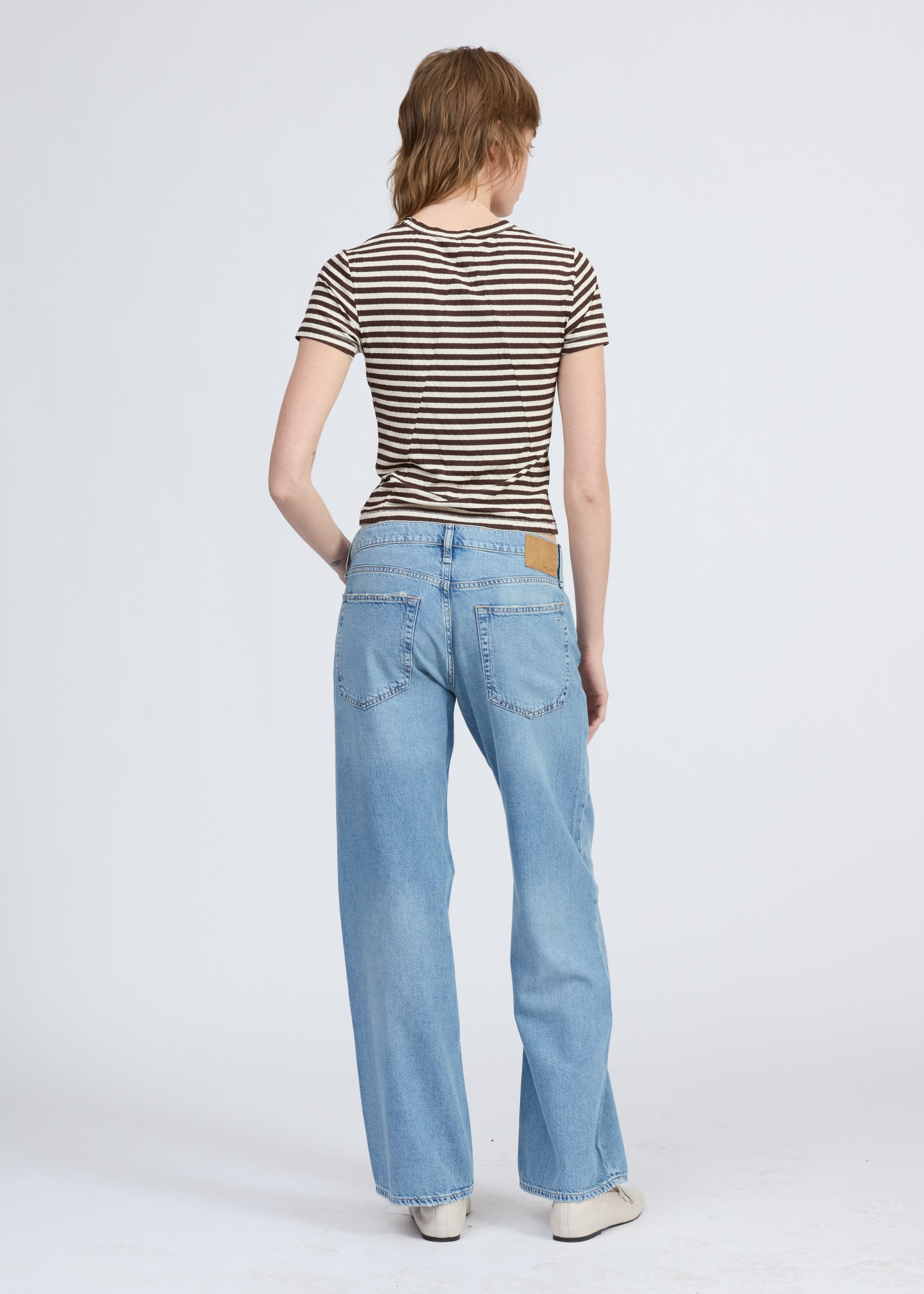 The Saige. Low-rise is back. Our new relaxed, straight leg jeans are effortlessly laid back and unapologetically of the moment. Off-duty cool without even trying. Crafted from our Featherweight denim that's supremely soft and super light, with an easy drape. Feels airy & effortless. In Ludlow, a light indigo wash.