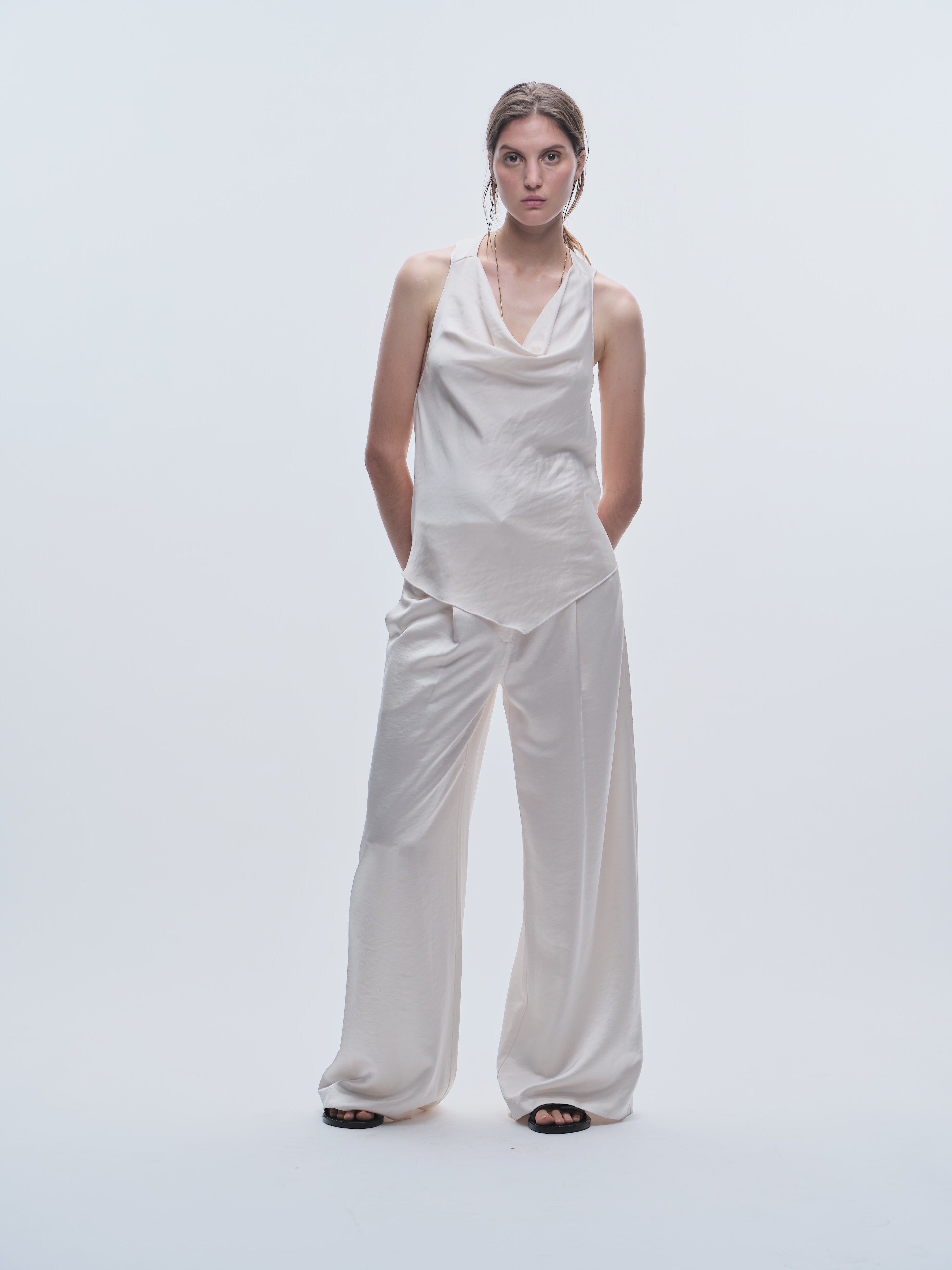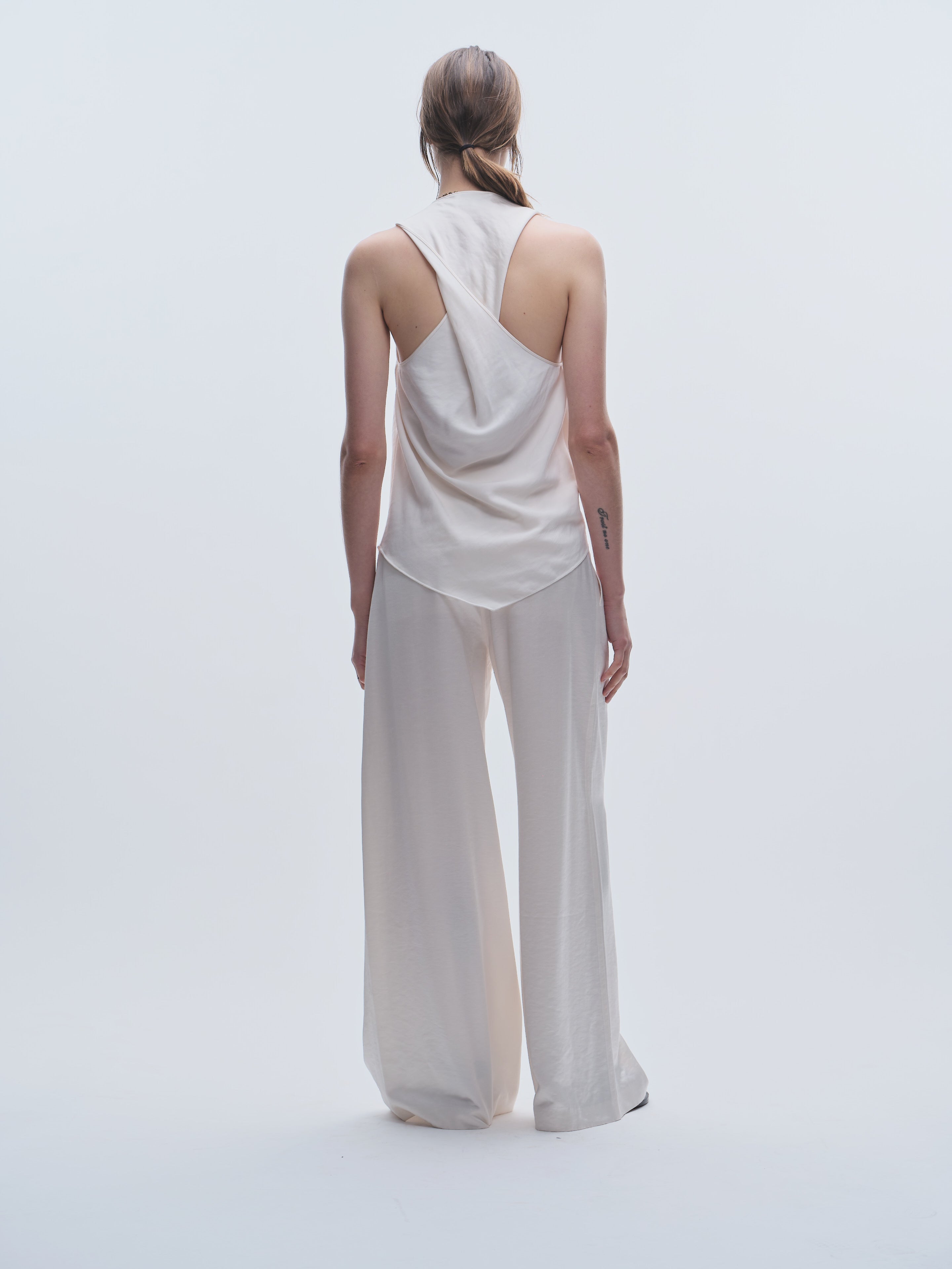 Effortless style meets modern design with the Alessia Twist Back Blouse. This cowl neck charmeuse top features a unique racerback and asymmetrical detailing, giving it a trendy twist. Made from high-quality fabric, this blouse is not only easy to wear but also adds a touch of elegance to any outfit. Machine washable, air dry.