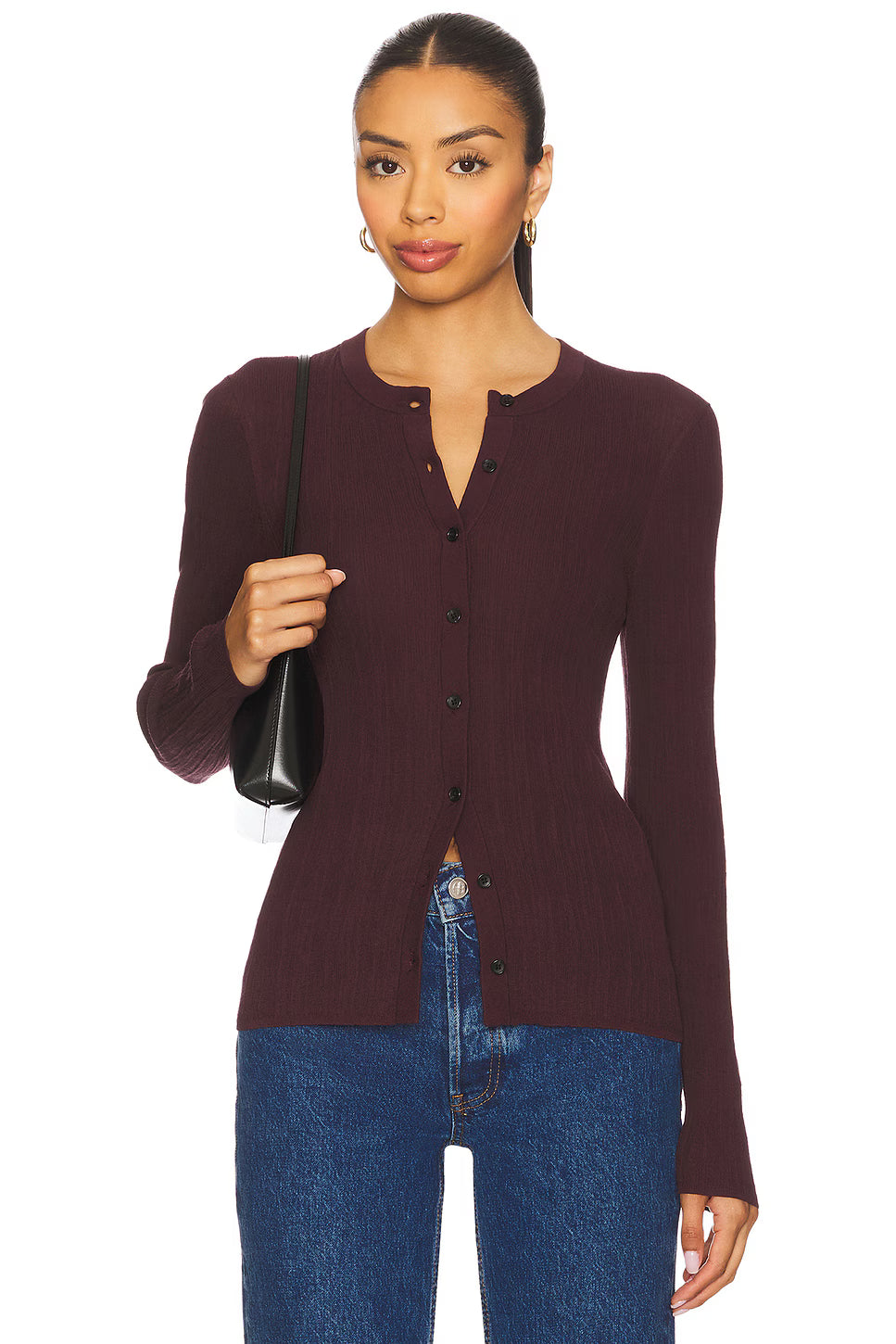 The Fisher Cardigan is crafted from our fine-gauge layering knit—a breathable cotton blend with a soft, tactile texture—in a sky-blue hue. This round-neck silhouette features a button-down placket and long sleeves, lending a refined, textural touch to any look.