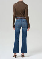 The Goldie offers a refined interpretation of ‘70s-inspired denim. Designed with a mid rise and a subtle kick-flare hem, the silhouette creates a long, balanced line that feels both timeless and modern. Crafted from comfort-stretch denim in a medium indigo wash, it has a super-soft hand and gently structured drape for all-day wearability. The perfect blend of ease and sophistication—an effortless go-to for elevated everyday dressing.