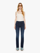 Change your tune. Mid-rise jeans with a flared leg, zip fly and a long 31-inch inseam with a clean hem. Crafted from soft stretch denim, Karaoke In Kyoto is a dark blue with subtle fading and whiskering.