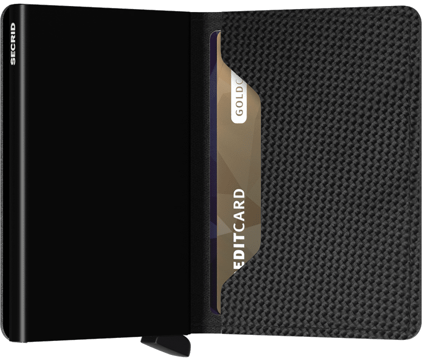 The Slimwallet Carbon Black has a weave pattern. The weave pattern of carbon fibres inspired this treatment of the leather surface.